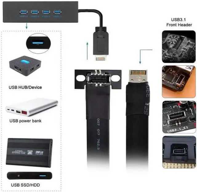 USB 3.1 Front Panel Header Male to Female Type-E Motherboard Extension Data Cable 50cm