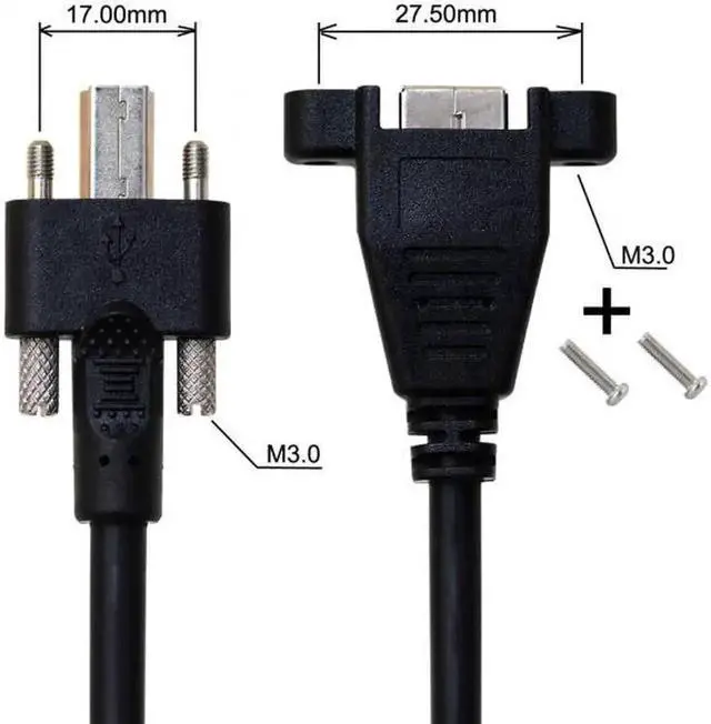 Dual Thumbscrews USB 3.0 Back Panel Mount B Male to Female B Type Extension Cable 0.5m