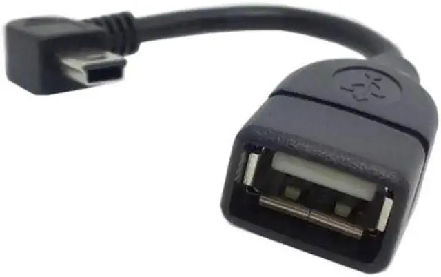 USB 2.0 A Female OTG to Left Angled 90 Degree Mini B Male Cable 10cm