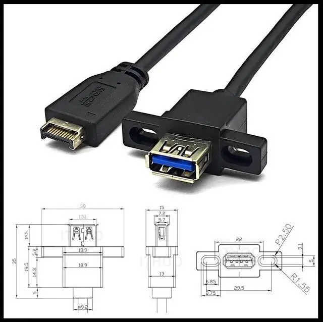 USB 3.2 front panel cable of TYPE-E KEY-A to USB-AM short cable 10G chassis with screw holes present