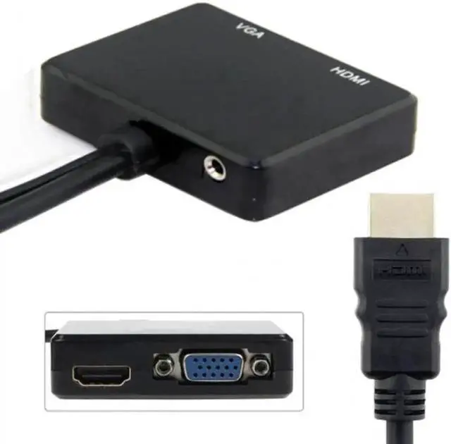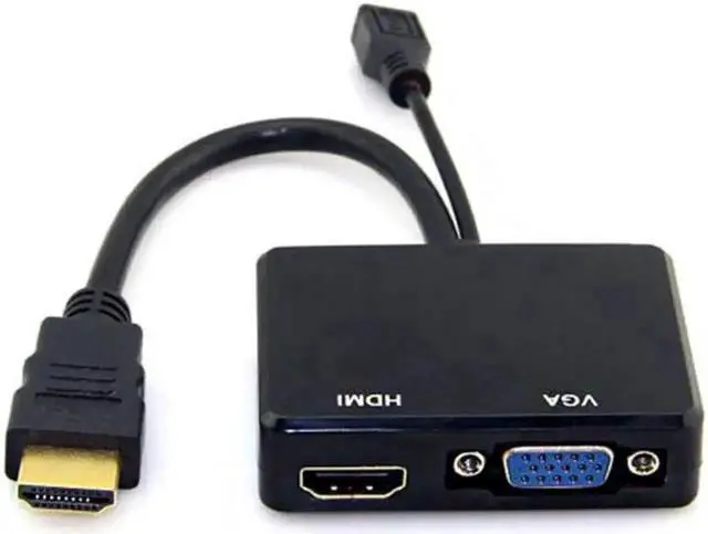 HDMI to VGA & HDMI Female Splitter with Audio Video Cable Converter Adapter For HDTV PC Monitor