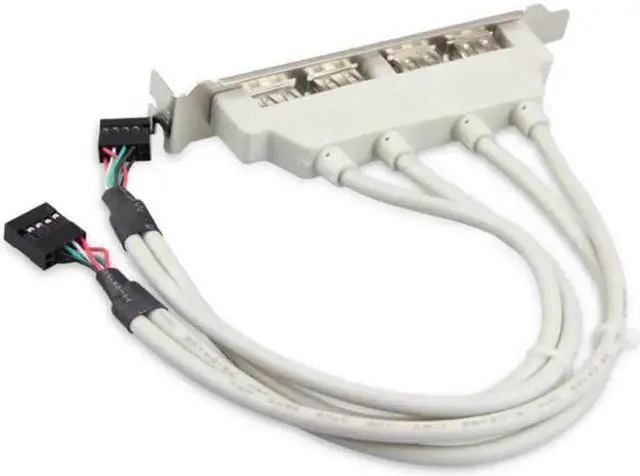 This USB 2.0 Type A Female to Motherboard Header Adapter features a 9-pin USB header connection, as well as a regular4 Ports USB A (female) port.