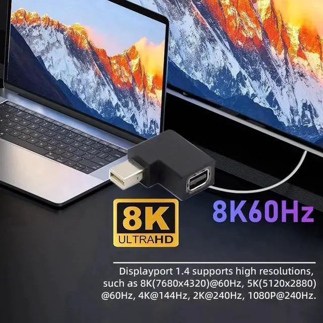 MiniDisplayPort male to female adapter, support 8K high resolution 7680 * 4320
