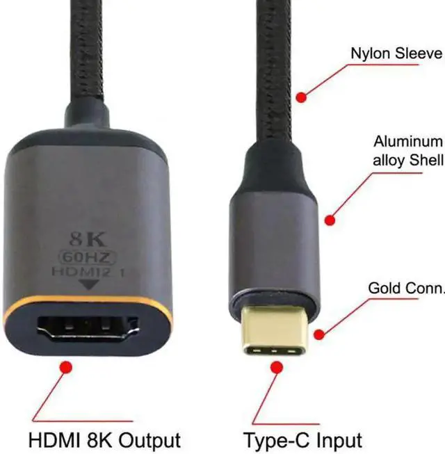Gold-plated USB-C to hdmi monitor cable Video 8K,4K UHD 2160p, HD 1080p, connectors, tinned copper wire, durable Nylon Braided, aluminum slim case, all of them ensure a strength connectivity between devices;