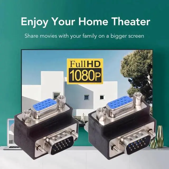 Cable 2pcs/lot Up & Down Angled 90 Degree VGA RGB HDB15Pin Screw Type Male to Female Nut Type Extension Adapter for Monitor Displays