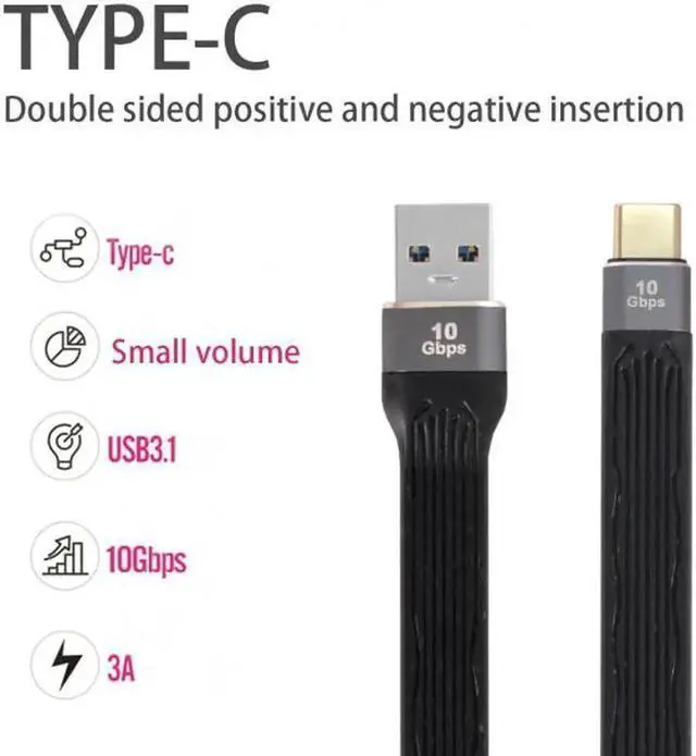10Gbps USB 3.1 Type C Male Host to USB3.0 Type A Male Flat Slim FPC Data Cable for Laptop & Phone