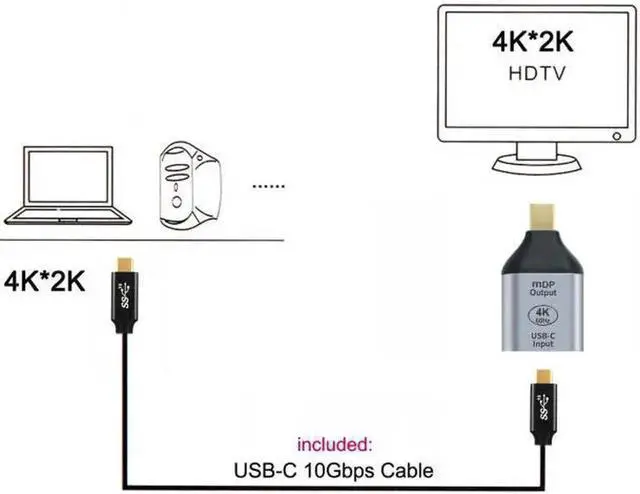 10Gbps 100W Cable USB-C Type C Female Source to Mini Displayport DP Sink HDTV Adapter 4K 60hz 1080p for Tablet & Phone & Laptop