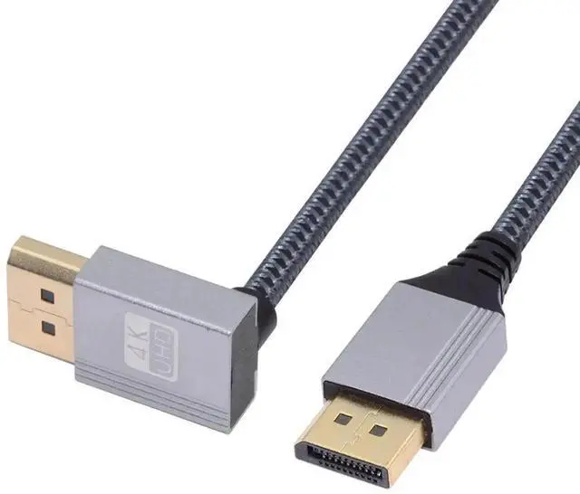 Up Angled DisplayPort DP to DP Cable 4K 60hz Cable Silver Sleeve Ultra-HD UHD 90 Degree for Desktop Laptop Monitor Graphics Card