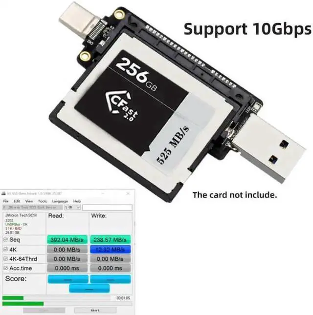 This is CFast to USB adapter Reads and writes to CFast2.0 via standard USB-C/USB-A interface.