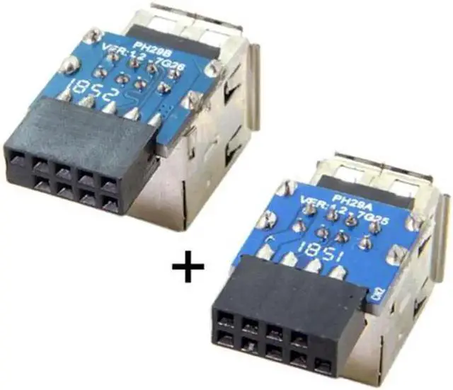 U2-029 2pcs 9Pin/10Pin Motherboard Female Header to Dual USB 2.0 Female Adapter Vertical Type