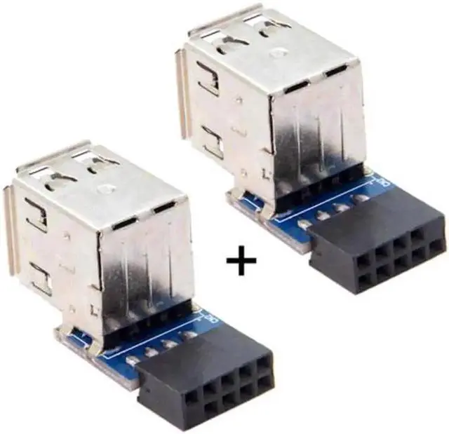 2pcs 9Pin/10Pin Motherboard Female Header to Dual USB 2.0 Female Adapter Vertical Type