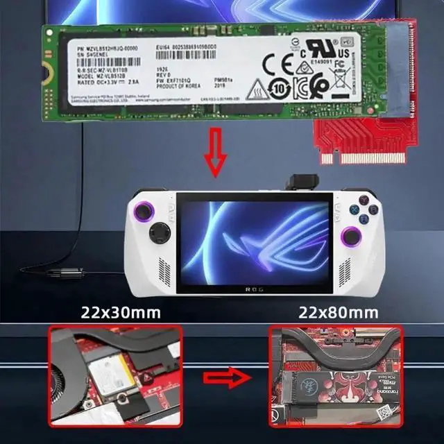 NVME M-Key 22x30mm to 22x80mm NGFF Extension SSD Upgrade Adapter Compatible with ROG Ally Gaming