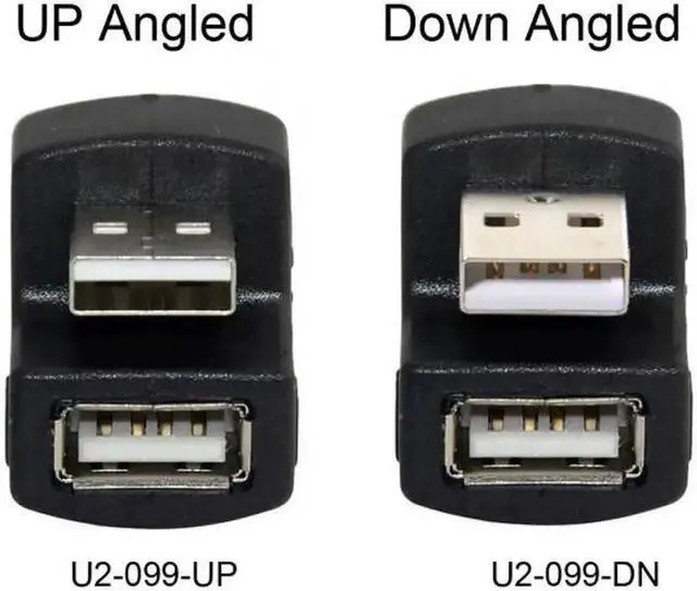 U2-099-DN+UP 1 Set UpDown Angled USB 2.0 Adapter A Male to Female Extension 180 Degree Black