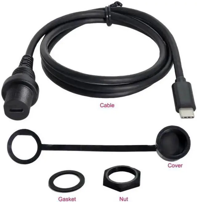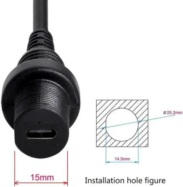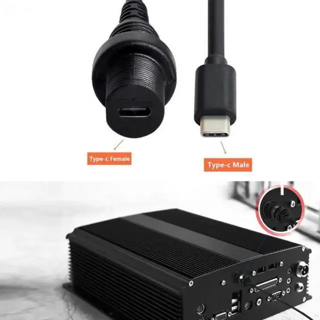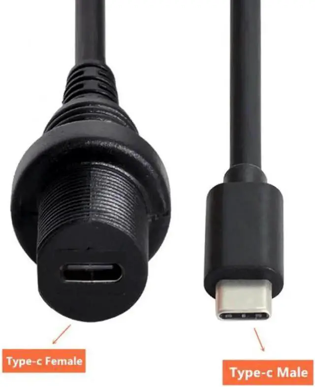 Waterproof USB-C Type-C USB 3.1 Extension Flush Car Mount Extension Cable for Dashboard Panel