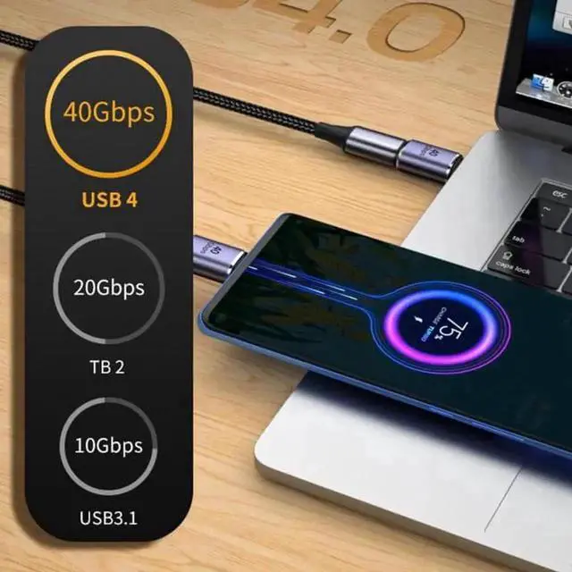 40Gbps USB4 Type C Male to Female Straight Connector 100W Power Data 8K Video Adapter for Laptop Phone