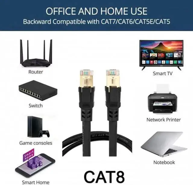 RJ45 Cat8 Ethernet Network Lan Cable Patch Cord 25/40Gbps for Router Laptop