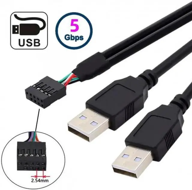U2-128 Motherboard 9Pin 10Pin Female Housing to Dual USB 2.0 Male Type-A Cable 50cm