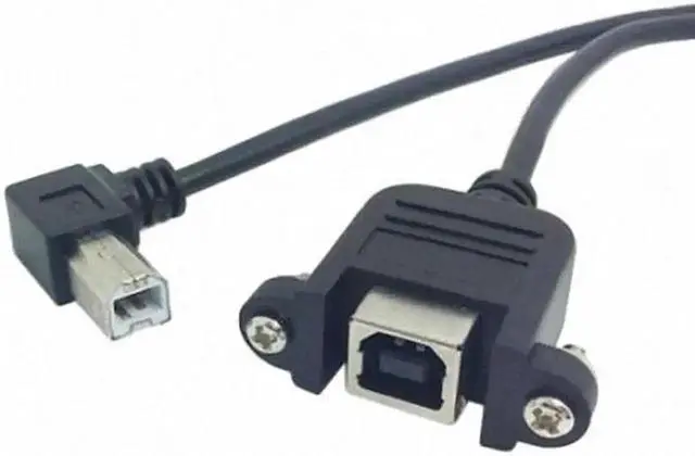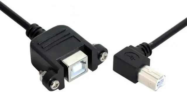 90 Degree Right Angled USB B Type Male to Female extension cable with screws for Panel Mount 50cm