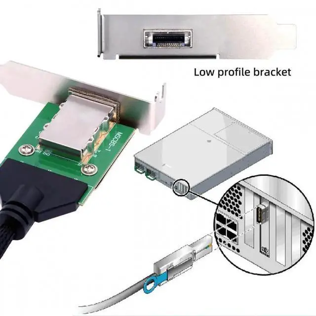 External 8088 male to female cable, will work both on the host and device side. With Low Profile bracket.