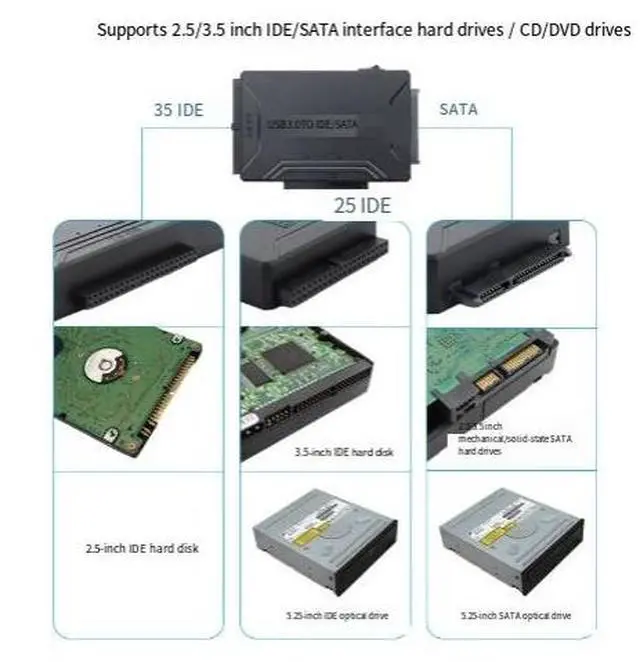 USB 3.0 to SATA Hard Drive USB to IDE Adapter Parallel Port Serial Port Optical Drive External Driver Cable