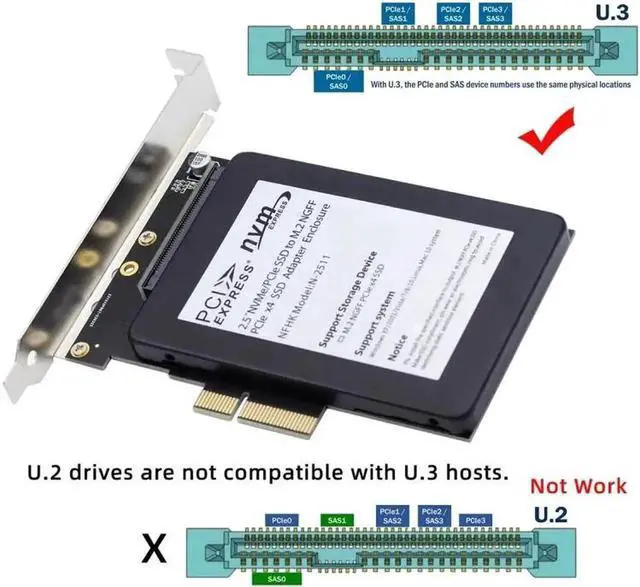 The card only work for U.3 SSD, not work for U.2 SSD,not work for SATA/SAS SSD.