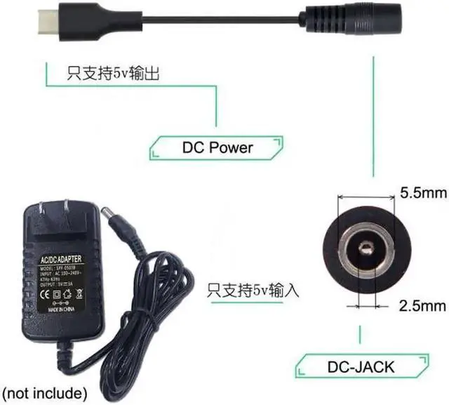 USB 3.1 Type C USB-C to DC 5.5*2.5mm Power Jack Extension Charge Cable for Cell Phone Tablet