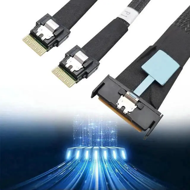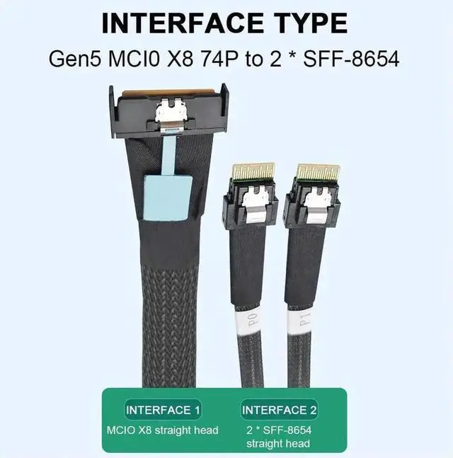 MCIO 8i Slimline SAS To 2 Ports SFF-8654 4i Cable PCIE5.0 Server Adapter Cable Male To Male Connection Cable Server Adapter 50cm