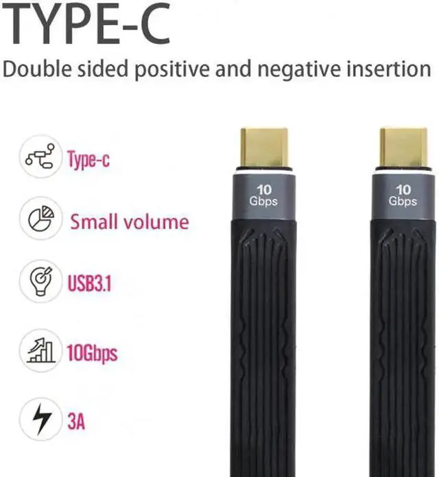 Type-C USB-C Male to Male USB 3.1 10Gbps Flat Slim FPC Data Cable for Laptop Phone 13cm