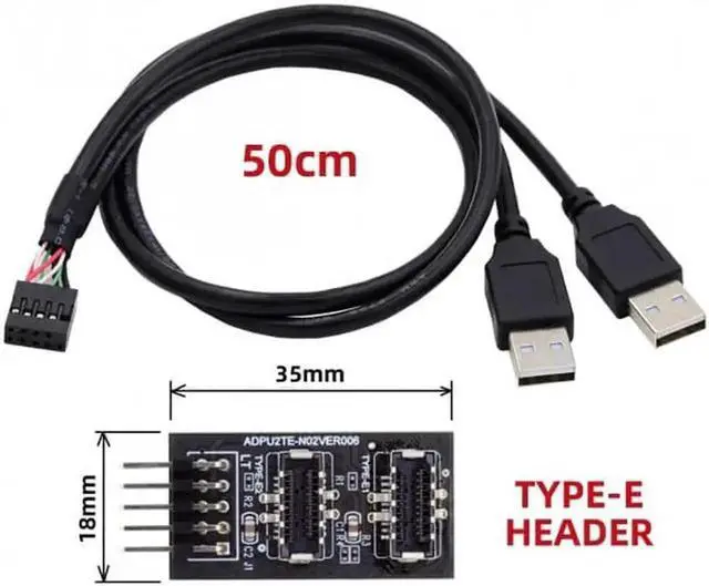 U2-128+UC-022 Dual USB 3.1 Front Panel Socket Key-A Type-E to USB 2.0 Type-A9Pin 10Pin Mainboard Header Male Cable Extension Adapter