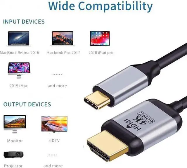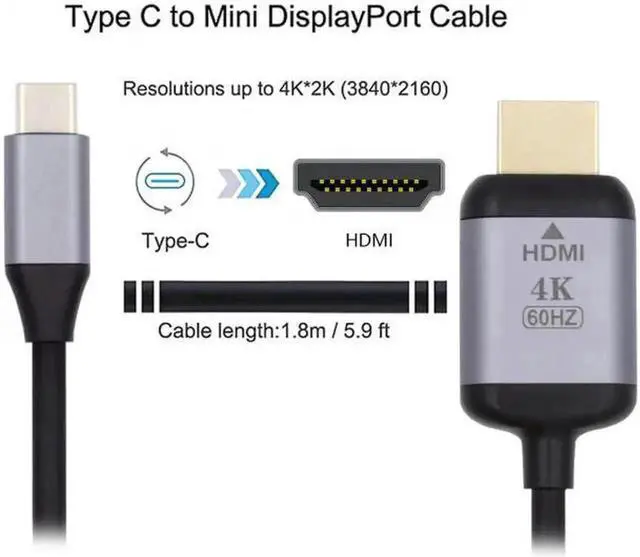 USB 3.1 Type C USB-C Source to HDMI HDTV Displays Male 4K Monitor Cable for Laptop 1.8m