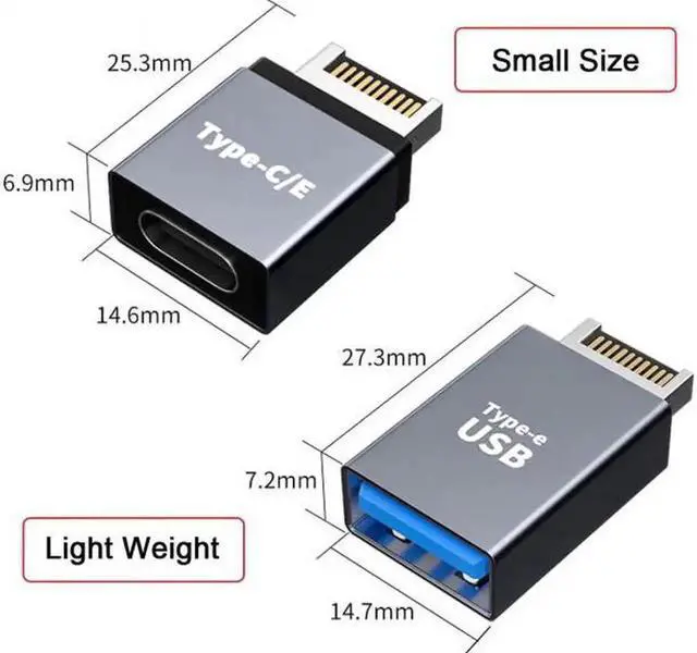 2pcs USB 3.1 Front Panel Header Male Type-E to Type-A Type-C USB-C Motherboard Extension Data Adapter