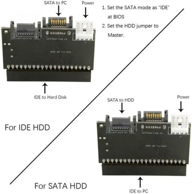 Converts serial ATA to parallel ATA or Converts parallel ATA to serial ATA