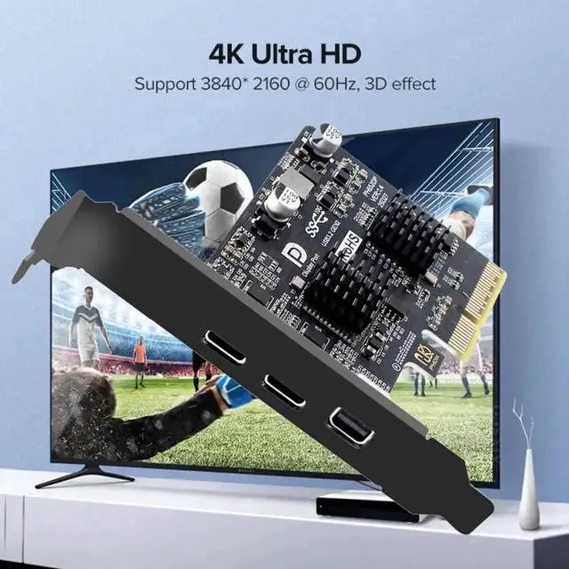 PCI-E Express 4x Mini Displayport 1.4 Input to Dual 10Gbps USB 3.1 Type-C USB-C 4K 60hz Output Desktop Graphics Expansion Card Adapter ASM3142