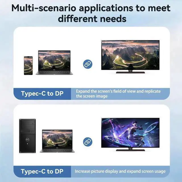 2) 16K@30Hz Video: 16KUSB4.0 USB5.0Display Port cable 2.1 supports 16K@30Hz with DSC, 10K@60Hz, 8K@60Hz, 4K@240/165/144Hz, 2K@240/165/120Hz , ensuring high quality content transmission and lossless audio output.