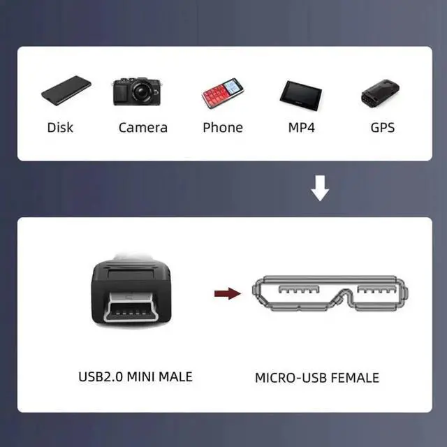 Adapts USB 3.0 Micro Type-B Male Connections to USB Mini 2.0 Male and vice-versa, With this cable, you can directly connect micro usb 3.0 socket, converted to usb 2.0 extension.
