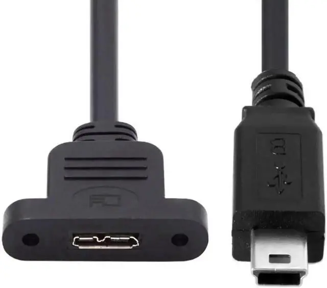 Mini USB 2.0 5Pin Male to Micro 3.0 Type-B Female Screw Mount Type Extension Cable 480Mbps