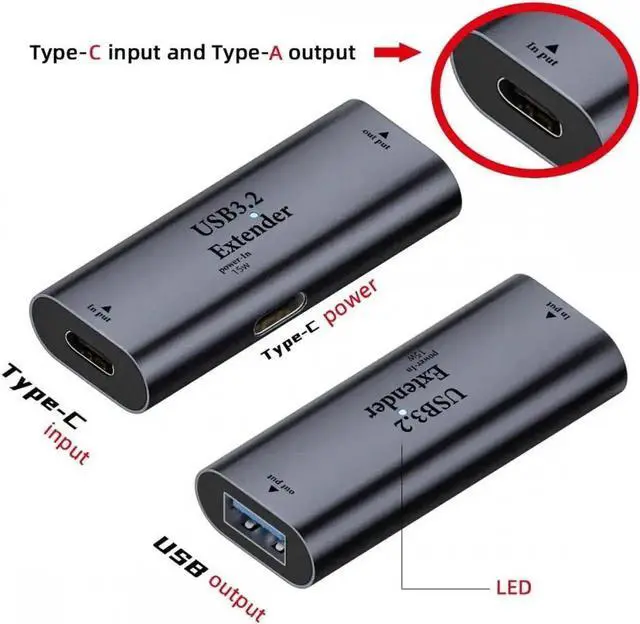 USB 3.0 Active Repeater Adapter Type-C Female Host to Type-A Female Device Extender with Chipset for Camera Printer Computer