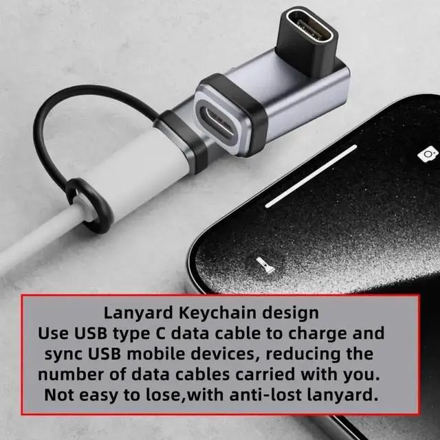 90 Degree AngledUSB5.0 80Gbps Female to Female Extension Adapter with Lanyard Keychain 240W 16K 8K 5K Compatible with USB4.0 Thunderbolt3/4/5