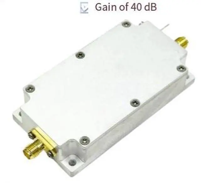 915 MHz RF power amplifier, with an output of 15W and a gain of 40dB in the 820 - 970 MHz range.