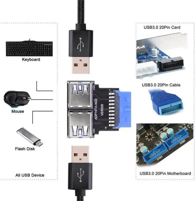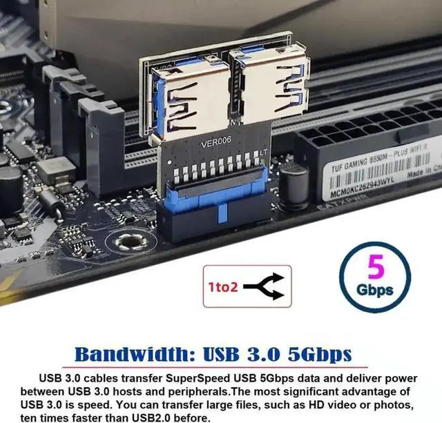 Dual USB 3.0 A Type Female to Motherboard 20/19 Pin Box Header Slot Adapter 5Gbps Horizontal Type PCBA