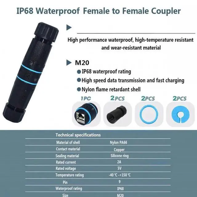 Waterproofable when connected to IP68 when connected or capped, and won't rust.