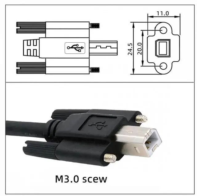 Cable length: 150cm; with M3 thumbscrew, scew center distance 20.0mm; Work for USB 2.0 Type-B device like Industrial Camera Robot Scanner Disk.