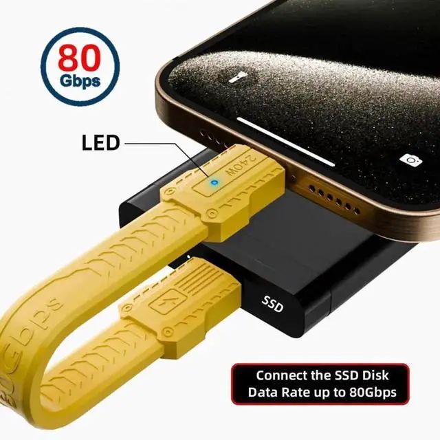 ThisUSB5.0 Cable can Reach Data Transfer Rate up to 80Gbps,the transmissions speed is twice as fast as Thunderbolt4/USB4.
