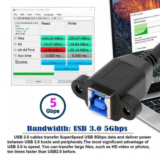 USB 3.0 Type-B Female to USB3.0 Micro-B Male Cable Extension 5Gbps for Disk SSD Camera Data 30cm