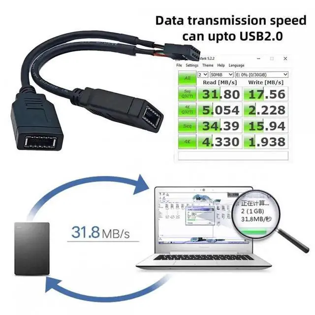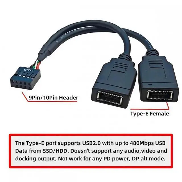 Dual Port USB 3.1 Front Panel Socket Key-A Type-E to USB 2.0 9Pin 10Pin Mainboard Header Male Extension Cable.