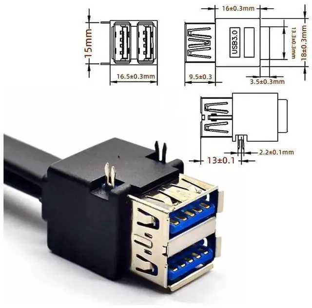 • Stackable Dual Port USB 3.0 Female Type-A DIP Type to Motherboard 20Pin 19Pin Header Cable with Fixed Feet 50cm