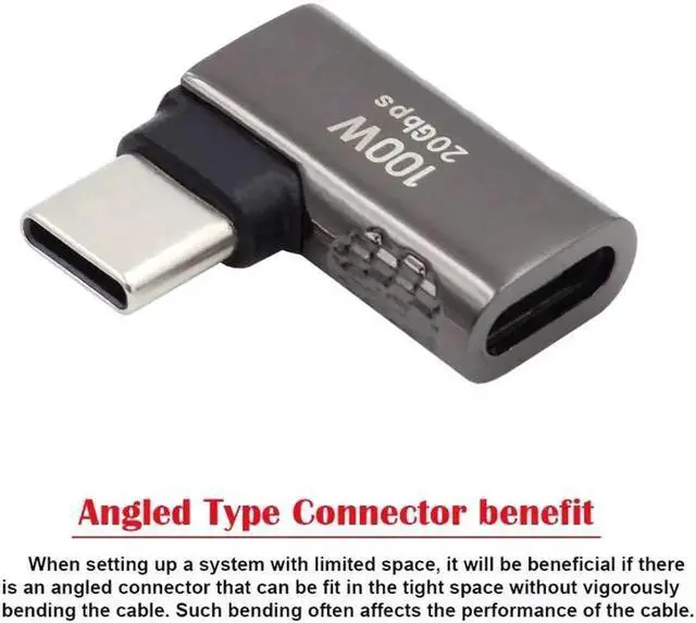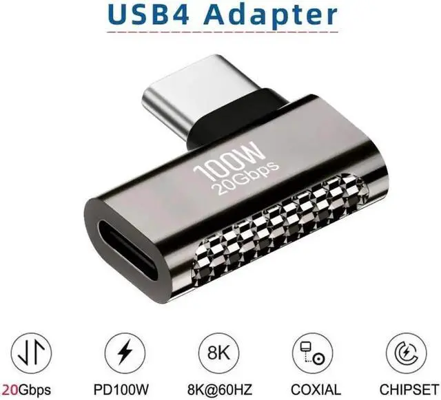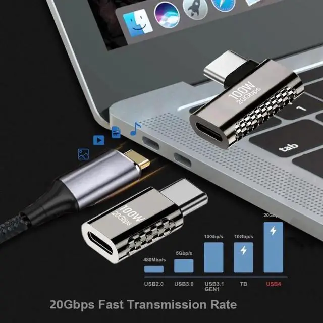 20Gbps USB4 Type C Male to Female 90 Degree Left Right Angled 100W Power Data 8K Video Adapter for Laptop Phone