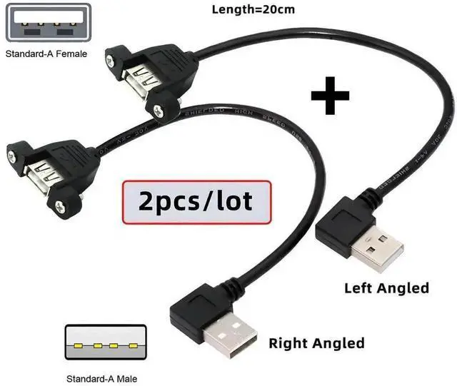 2pcs/lot Left Right Angled Type USB 2.0 Type-A Male to USB Female Extension Cable Panel Type 90 Degree 25cm