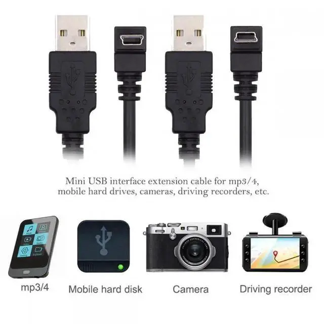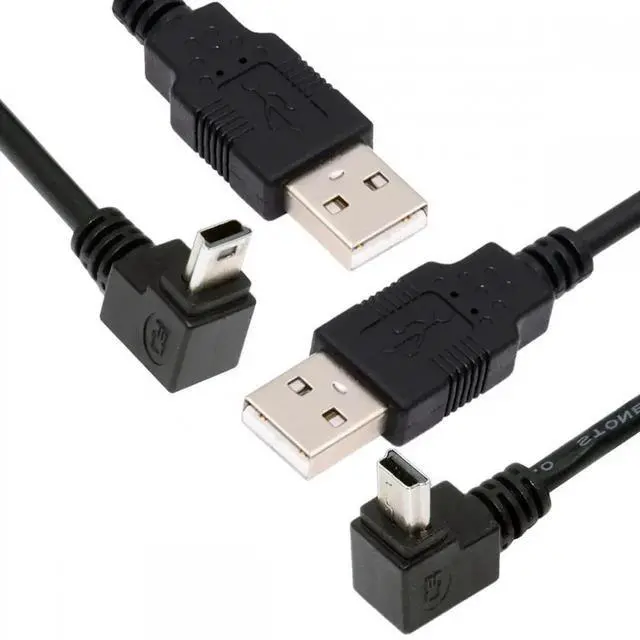 2pcs/lot Down Up Angled Mini USB B Type 5pin Male 90 Degree to USB 2.0 Male Power Data Cable 50cm