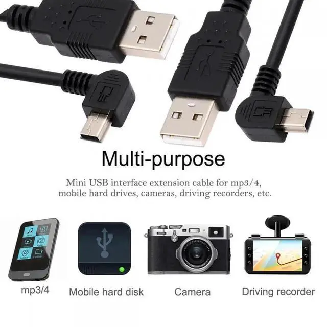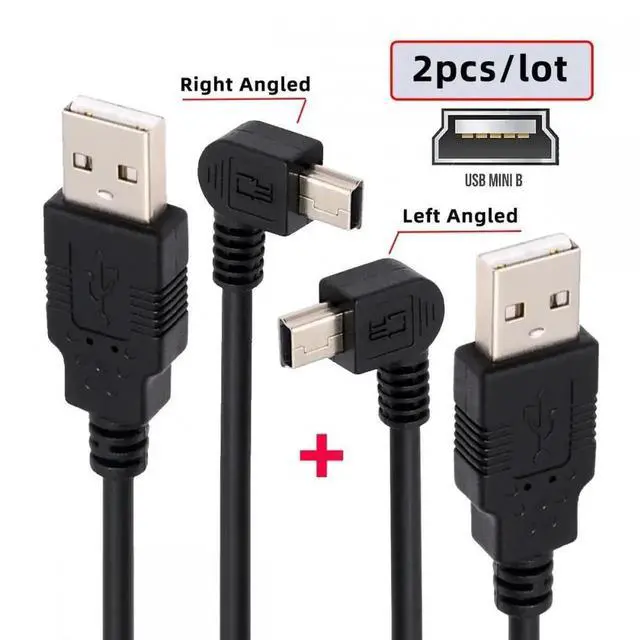 2pcs/lot Left Right Angled Mini USB B Type 5pin Male 90 Degree to USB 2.0 Male Power Data Cable 50cm